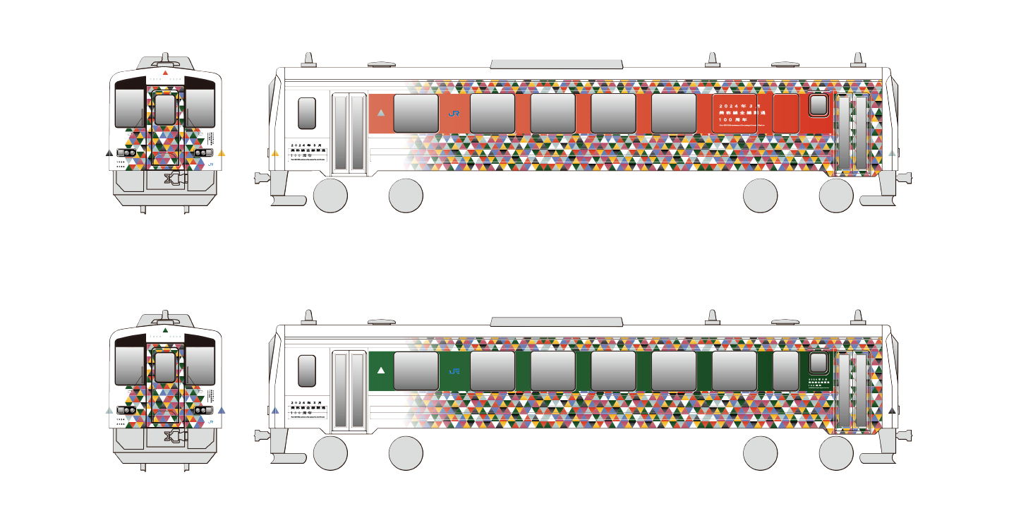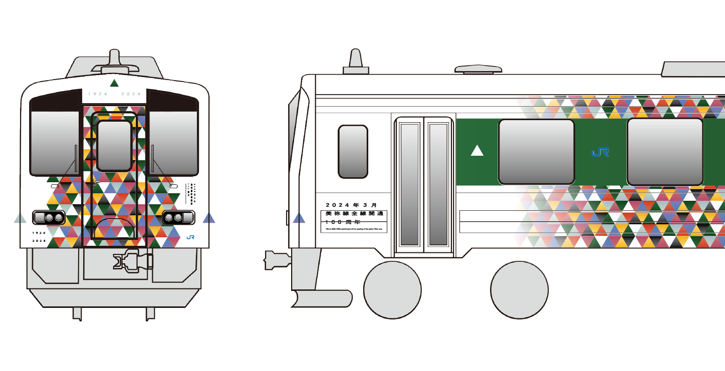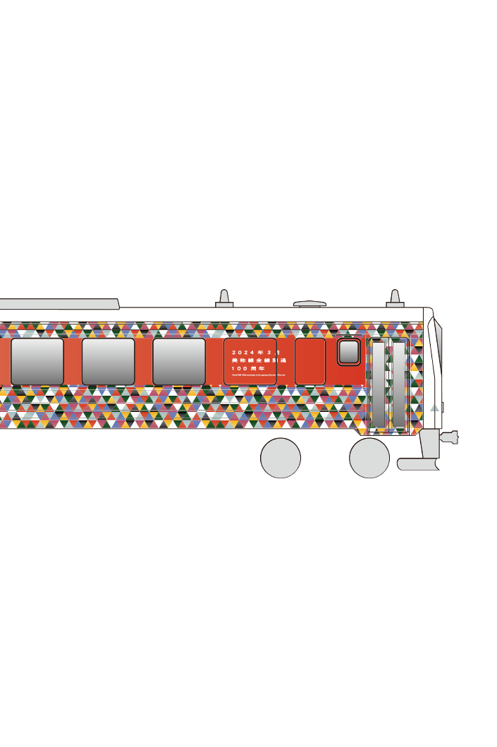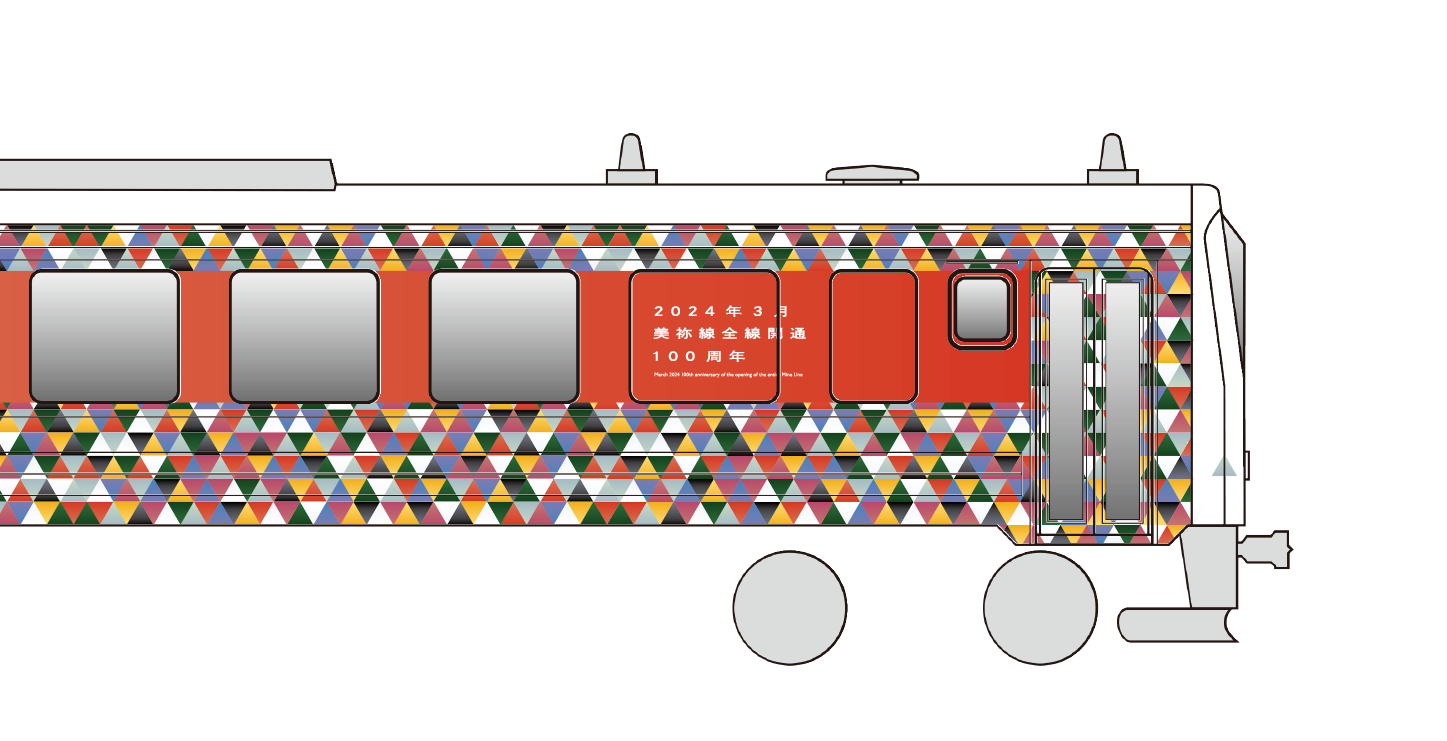 山口県を走るJR西日本美祢線全線開通100周年を記念した車体ラッピングデザインの提案。100年間の歴史で走ってきた歴代の車両からカラーを取り出し、そのカラフルな色を100周年を祝福する紙吹雪として、車体をラッピングするデザイン提案を行った。開通当初の蒸気機関車の黒色から、国鉄時代の車両から黄色や緑色、現役のキハ120形から青色等長い長い歴史の中沿線を彩ってきたカラフルな色を集めそれを紙吹雪のように見えるよう模様を制作し、車体全体にラッピングした。歴代の車両やその路線を利用していたお客様のすべての記憶と思い出をこのデザインに込めた。
