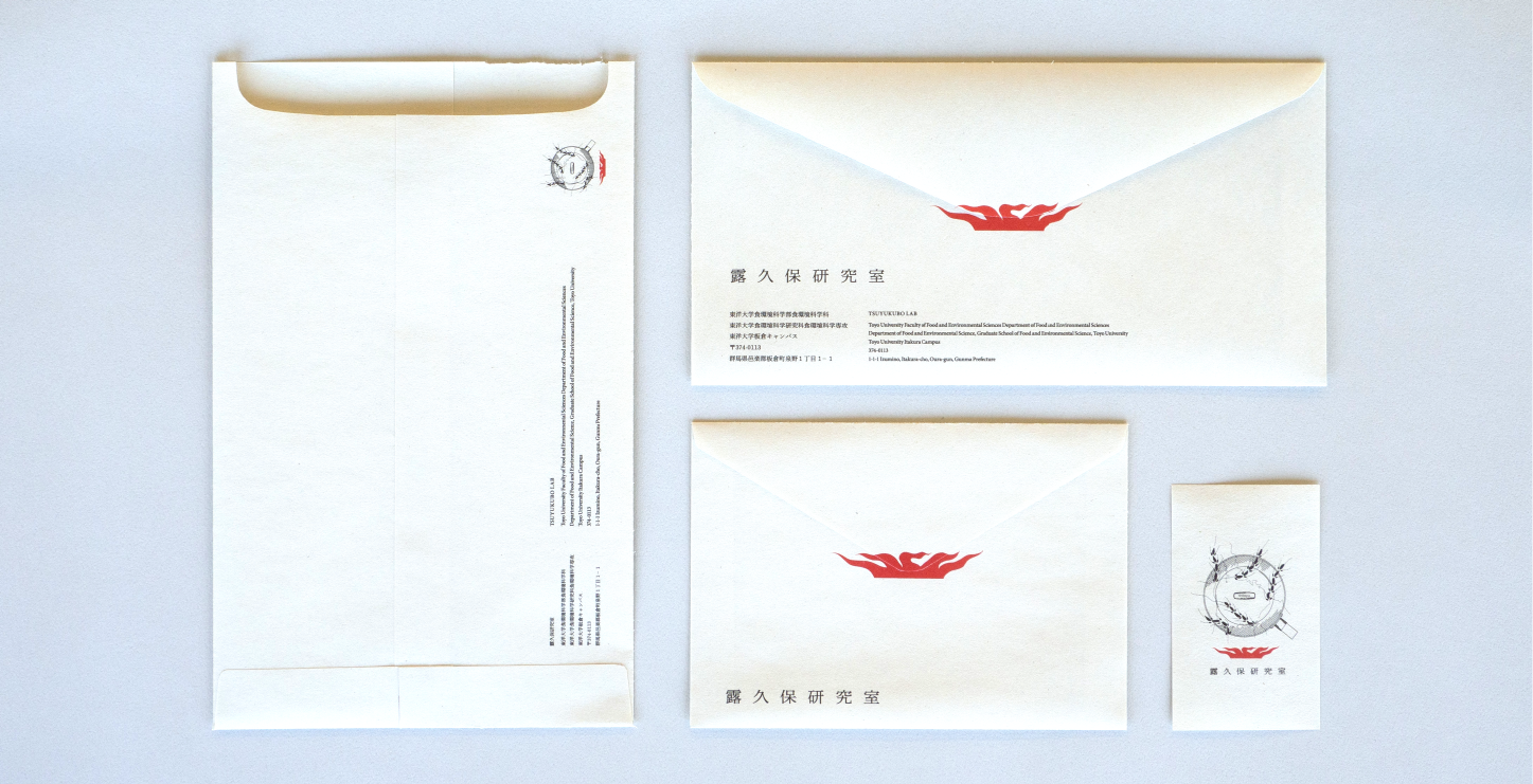 東洋大学露久保研究室のロゴデザインを含むVI制作を行なった。調理を科学的アプローチで研究、また麦類を中心に扱うことが特徴的な露久保研究室。科学、調理、麦というキーワードを核にその世界観を、親しみを持て、温かみのある無機質でないイラストを線画で描きロゴを制作した。その中で一番アイデンティティとして残る「炎」の部分を取り出し、シンプルなロゴデザインとしても提案した。この二つはお互いに並列で成り立つことができるよう設計しており、場合に分けて使用することを想定している。また、その展開として、小型グラフィックを複数提案したい。